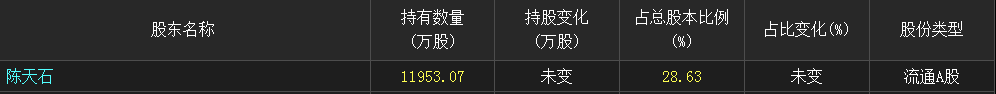截至8月27日收盘,寒武纪总市值达5740.18亿元,根据十大流通股东信息显示,寒武纪第一大股东为创始人、董事长兼总经理陈天石。陈天石直接持有寒武纪28.63%股份,对应市值约1643.41亿元。